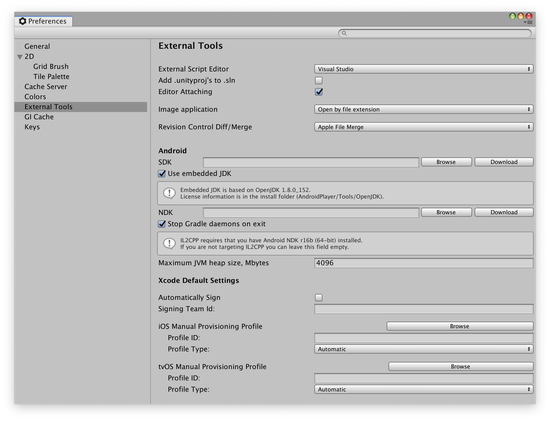 Android SDK Tools를 설치하고 다시 Unity Preferences의 Android SDK 경로를 확인하면 정상적으로 인식하는 것을 볼 수 있습니다.